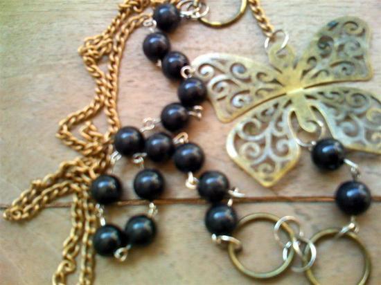 สร้อยคอรูปผีเสื้อน่ารัก ประดับมุกพลาสติกสีดำ