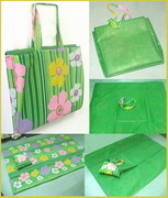 ผ้าปูนอนผลิตจากผ้าโพลีเอสเตอร์พิมพ์ลาย และผ้าสปันบอนด์ สามารถพับเป็นกระเป๋าสะพายใส่ของได้