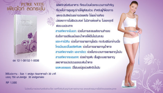 PURE VITE ( เพียวไวท์ ) เป็น อาหารเสริม สูตรลดน้ำหนัก ลดกระชับ ต้นแขน ต้นขา ลดหน้าท้อง ควบคุม น้ำหนัก ดักจับไขมัน เพิ่มระดับการเผาผลาญ