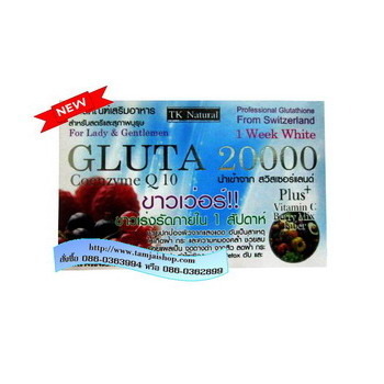 ขาวเว่อร์!!! SUPER WHITENING กลูต้า 20000 ต้านอนุมูลอิสระได้ดีเยี่ยม ผิวขาวใสทันใจ ขาวเวอร์เห็นผลตั้งแต่สัปดาห์แรกค่ะ (สินค้าบริษัท T.K) ค่ะ