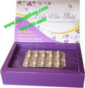 Lida Vite Gold ลิด้า ไวท์ โกลด์ ช่วยให้ผิวขาวใส อมชมพู เน้นลดเลือนริ้วรอย ลดตีนกา กระชับรูขุมขน ช่วยให้ผิวชุ่มชื่น ดูอ่อนกว่าวัยถึง 10 ปี อายุ ตั้งแต่ 28-30 ปีขึ้นไป ไม่ควรพลาด ลองทานดูค่ะ อย.12-2-00129-1-0016 บรรจุ 30 แคปซูล1 แคปซูล 620 มก. ราคาปกติ 1,850 บาท ลดราคาเหลือ 600 บาท ลิด้า ไวท์ โกลด์ สินค้านำเข้าจากอเมริกา นวัตกรรมใหม่ช่วยต้านอนุมูลอิสระที่ทรงประสิทธิภาพ เป็น Super –Antioxidants และออกฤทธิ์มากกว่า Coenzyme Q10 ถึง 40 เท่า ฮิตสุดๆในประเทศอเมริกา ยาอายุวัฒนะตัวใหม่ ลิด้า ไวท์ โกลด์ เป็นอาหารเสริม ต้านภาวะความชรา (Antiaging Products) และยังใช้ในการบำรุงสมองป้องกันโรคสมองเสื่อมในคนชราทางการแพทย์ยังพบอีกว่า สามารถช่วยลดริ้วรอยแห่งวัยได้อย่างรวดเร็วภายในระยะเวลาเพียงแค่2-6 สัปดาห์เท่านั้นเอง อีกทั้งยังเหมาะกับทุกสภาพผิวอีกด้วย ลิด้า ไวท์ โกลด์ นอกจากจะลดริ้วรอยแล้ว ยังช่วยให้ผิวขาวใส อมชมพู เน้นลดเลือนริ้วรอย ลดตีนกา กระชับรูขุมขน ช่วยให้ผิวชุ่มชื่น ลิด้า ไวท์ โกลด์เหมาะสำหรับผู้ที่ต้องการ ป้องการและลดเลือนริ้วรอย อาหารผิวขาวใส หน้าอมชมพู สูตรเน้นลดริ้วรอย ลดตีนกา กระชับรูขุมขน ลดกระ ฝ้า จุดด่างดำ ช่วยให้ผิวชุ่มชื่นดูอ่อนกว่าวัยถึง 10 ปี อายุตั้งแต่ 28-30 ปีขึ้นไป ส่วนประกอบสำคัญ : ( 500 มก./แคปซูล )Collagen , L-glutathione, Pine Bark extract, Alpha lipoic acid, Acerola cherry extract, Grepe seed extract, L-glutamin, L-arginine, Co-emzyme Q10 วิธีรับประทานทานลิด้าไวท์โกลด์ วันละ 1-2 แคปซูลก่อนนอน ลิด้า ไวท์ โกลด์ สินค้ามาใหม่ขายดีมากๆในอเมริกา จัดเป็นสินค้าที่มาแรงที่สุดเลยก็ว่าได้ สามารถทานคู่กับ ลิด้า ไวท์ พลัส วันละ 1-2 แคปซูลก่อนนอน สั่งซื้อ 1 ชิ้น@ 600 บาท สั่งซื้อ 3 ชิ้น@ 550 บาท สั่งซื้อ 6 ชิ้น@ 500 บาท