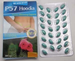 กล่องละ 350 บาท รุ่นใหม่ ลดน้ำหนักได้ดีกว่าตัวเก่า ถึง 2 เท่า รุ่นนี้เป็นรุ่นภาษาไทย ขายเฉพาะในประเทศไทย P57 Hoodia Blue Cactus Slimming Capsule ผลิตภัณฑ์ที่คัดสรรจากต้นตระบองเพชร บริเวณแถบทะเลทราย Kalahari จากทวีปแอฟริกาใต้ โดยผ่านกระบวนการสกัดด้วยเทคโนโลยี่ทางชีวภาพที่ทันสมัย ด้วยอัตราการสกัด 20:1 ซึ่งนักวิทยาศาสตร์ค้นพบว่า ในต้นตระบองเพชรมีสารสกัด P57 ซึ่งเป็นโมเลกุลขนาดเล็ก ที่สามารถเข้าสู่เซลประสาท และส่งสัญญาณไปสู่เซลประสาท ส่วนกลางว่า มีปริมาณน้ำตาลในกระแสเลือดเพียงพอ สำหรับความต้องการของร่างกาย ผลของการที่โมเลกุล P57 เข้าสู่เซลประสาทและส่งสัญญาณไปสู่เซลประสาทส่วนกลาง - ร่างกายเกิดความรู้สึกไม่อยากอาหาร - มีการเผาผลาญแคลลอรี่ ตามปรกติโดยม่ต้องทานอาหาร จึงทำให้มีการลดน้ำหนักได้อย่างรวดเร็ว ปริมาณสุทธิ 240 mg -ขนาดบรรจุ 30 softgel