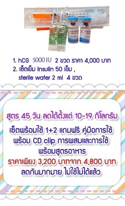 สุดค้มกับแพ็คเก็จ 45 วัน ทลายไขมัน 8-18 กิโลกรัม (hCG 2 ขวด) ราคา 3200 บาท จากราคาปกติ 4800 บาท ด่วน!!! สมัครสมาชิกฟรีเพื่อรับส่วนลดพิเศษ