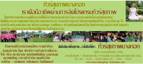บ. บางกอกเทรนนิ่ง จำกัด รับบริการจัด ทัวร์สุขภาพ ,โปรแกรมล้างสารพิษ แบบหมุ่คณะ มีทั้งแบบไป กลับ แบบ 2 วัน 1 คืน แบบ 3 วัน 2 คืน
