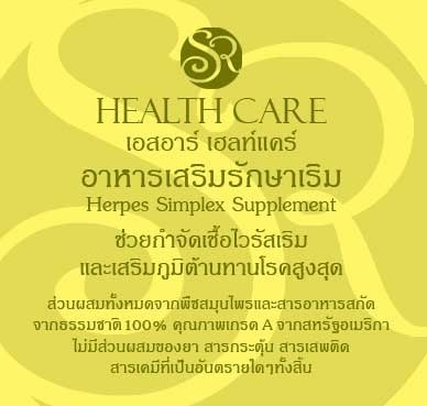 รักษาโรคเริม ได้ผลดีที่สุดปลอดภัยที่สุด ด้วยสุดยอดอาหารเสริมสกัดจากพืชธรรมชาติ 100% คุณภาพเกรด A จากสหรัฐอเมริกา ขอแนะนำชุดอาหารเสริมที่ชาวอเมริกันนิยมรับประทานเพื่อรักษาโรคเริม Herpes simplex ที่ได้ผลดีที่สุดในปัจจุบัน เอสอาร์เฮลท์แคร์ อาหารเสริมรักษาเริม จะช่วยกำจัดเชื้อไวรัสเริมและเสริมภูมิต้านทานโรคสูงสุด