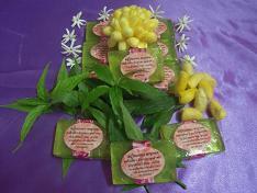 สบู่พญาไหมทอง รังไหมทองอุดมด้วยโปรตีนและ Olive oil and jo jo ba oil ใบพญายอ สรรพคุณ ลดสิวหนอง จุดด่างดำ กระชับรูขุมขน ล้างเครื่องสำอางค์สะอาดหมดจด ผิวหน้าอ่อนเยาว์ เลขจดแจ้ง : 12-1-5400053และกรมส่งเสริม อุตสาหกรรม โปรโมชั่น สั่ง 12 ก้อน แถมสบู่ขัดผิวทานาคามะขาม 1 ก้อน ฟรี