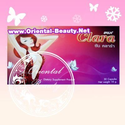 โปรตีน สกัดจากถั่วเหลือง 34.67% สารสกัดจากทับทิม 15.00%คอ ลลาเจนจากปลา 13.67% สารสกัดจากเปลือกสน 8.83% Alpha Lipoic Acid 6.16% สารสกัดจากชาเขียว 5.00% แคปซูล16.67% สาร อาหารเหล่านี้ออกฤทธิ์ กระตุ้นการ สร้างฮอร์โมนเพศ ควบคุมฮอร์โมนจากต่อมไร้ท่อ ที่ควบคุมระบบการทำงานทุกส่วนของร่างกาย วิธีการรับประทานซันคลาร่า Sunclara: รับประทานซันคลาร่าครั้งละ 1 แคปซูล ก่อนนอน น้ำหนักมากกว่า 55 กก. เพิ่มเป็น 2 แคปซูลเห็นผลภายใน 7-15 วันคำ เตือน เด็กและสตรีมีครรภ์ไม่ควรรับประทาน แต่อย่าลืมรับประทานอาหารให้ครบ 5 หมู่ ในสัดส่วนที่เหมาะสมเป็นประจำ ซันคลาร่า Sunclaraของแท้จากบริษัท 1 กลองบรรจุ 30 แคปซูล ซันคลาร่า Sunclara ของเราเป็นของแท้ 100% หากพบซันคลาร่า Sunclara ซื้อจากเราเป็นของปลอม ยินดีคืนเงินให้ท่าน 100 เท่า ซันคลาร่า Sunclara ราคากล่องละ 850 บาท ซันคลาร่า Sunclara 2 กล่อง 1,600 บาท