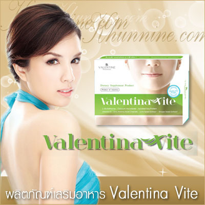 ปาริตา โกศลศักดิ์ (ปลา) ดารา-นักแสดง ปลาใส่ใจดูแลสุขภาพผิวของตนเองอย่างสม่ำเสมอ ยิ่งทุกวันนี้ปลามีถ่ายละครกลางแจ้ง ออกแดดแทบทุกวัน เพื่อน ๆ นักแสดงถามว่ามีเคล็ดลับอะไร ผิวปลาถึงกระจ่างใสได้ตลอดเวลา... แม้ออกแดดก็ไม่หมองคล้ำ เคล็ดลับง่าย ๆ ของปลา เพียงวันละ 1 แคปซูล ก่อนนอนค่ะ เพียงไม่นานสัมผัสได้ถึงความเปลี่ยนแปลงผิวปลาดูกระจ่างใส อ่อนเยาว์และมีสุขภาพดีค่ะ เคล็ดลับที่ไม่ลับ กระจ่างใสอย่างเป็นธรรมชาติในแบบ...ปลา "วาเลนติน่า ไวท์" ส่วนประกอบที่สำคัญใน 1 แคปซูล แอล-กลูตาไธโอน 200 มก. แอล - กลูตาไธ 200 มก แคลเซียม แอสคอร์เบต 60 มก. แคลเซียมแอสคอร์เบต 60 มก. โปรตีนสกัดจากถั่วเหลือง 37 มก. โปรตีนสกัดจากถั่วเหลือง 37 มก. วิตามินอี 30 มก. วิตามินอี 30 มก. สังกะสี 25 มก. สังกะสี 25 มก. สารสกัดจากเมล็ดลิ้นจี่ 20 มก. สารสกัดจากเมล็ดลิ้นจี่ 20 มก. สารสกัดจากเมล็ดองุ่น 20 มก. สารสกัดจากเมล็ดองุ่น 20 มก. ไลโคพีน 10 มก. ไลโคพีน 10 มก. ซีลีเนียม อะมิโน แอซิด คีเลต 2 มก. ซีลีเนียมอะมิโนแอซิดคีเลต 2 มก. ขนาดบรรจุ 30 แคปซูล วิธีรับประทาน รับประทานครั้งละ 1 แคปซูลก่อนนอน เลขที่ทะเบียน อย.10-1-04741-1-0383 บรรจุ 30 แคปซูล สนใจสอบถามรายละเอียดและสั่งซื้อได้ที่ โทร 081-792-7500