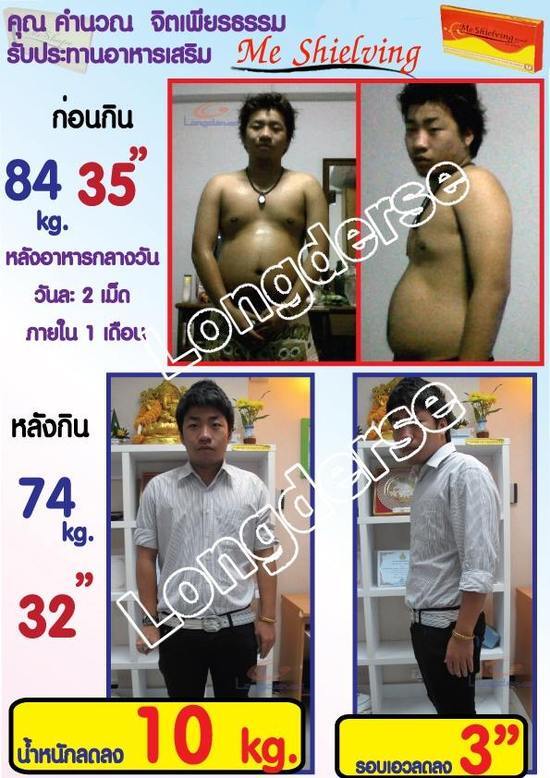 น้ำหนักก่อนทาน 84 กก. หลังทาน 74 กก. น้ำหนักลดลง 10 กิโล พอใจมาก คุ้มค่า ราคาไม่แพง ปลอดภัย