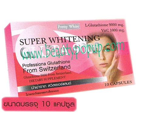 SUPER WHITENING กลูต้า 9000 ต้านอนุมูลอิสระได้ดีเยี่ยม ผิวใสทันใจเลยค่ะ นำเขาจาก สวิสเซอร์แลนด์