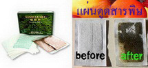 New แผ่นแปะฝ่าเท้าขจัดสารพิษช่วยบรรเทาและบำบัดโรค แผ่นดูดสารพิษ เป็นผลิตภัณฑ์ที่ญี่ปุ้นได้ค้นคว้าวิจัยมาแล้วถึง 26 ปี สกัดจากสาร “wood vinegar” และสารสกัดอื่นๆ จากธรรมชาติโดยผ่านกรรมวิธีเฉพาะ และด้วยเทคโนโลยีชั้นสูงบรรจุเป็นห่อ สำหรับการนำไปใช้ติดใต้ฝ่าเท้า ซึ่งมีจุดสะท้อนระบบประสาทอวัยวะภายในของร่างกาย คิโนะทาการะสามารถที่จะกระตุ้นจุดต่างๆ ใต้ฝ่าเท้ากว่า 60 จุด โดยการนำสารพิษที่อยู่ในอวัยวะต่างๆ ออกจากร่างกายผ่านบริเวณฝ่าเท้า แผ่นดูดสารพิษ ได้ผ่านการทดลองกับคนไข้ พบว่าสามารถช่วยบรรเทาอาการปวดต่างๆ ได้อย่างมีประสิทธิภาพ เช่น โรคปวดข้อ โรคเก๊าท์ โรคข้ออักเสบ ปวดเข่า ปวดเอว ปวดหลัง ปวดขา คลายอาการปวดบวม ช่วยขจัดของเสียโดยดูดสารพิษออกจากร่างกายโดยผ่านระบบการไหลเวียนเลือดทำให้ระบบภูมิต้านทานและระบบต่างๆในร่างกายดีขึ้น ช่วยสร้างสมดุลให้ร่างกาย ทำให้อาการของโรคต่างๆที่เป็นทุเลาลงโดยธรรมชาติบำบัด และสำหรับตนที่ไม่เป็นโรค ก็ใช้ดูแลสุขภาพป้องกันลดความเสี่ยงต่อการเกิดโรค, ลดการใช้ยาแผนปัจจุบันที่ผลข้างเคียงต่อร่างกาย แผ่นดูสารพิษ ใช้งานง่ายเพียงแปะที่ฝ่าเท้า หรือบริเวณที่ปวดเมื่อย ให้ทำความสะอาดฝ่าเท้าหรือบริเวณที่ต้องการและเช็ดให้แห้ง ลอกแผ่นกาวออกผ้ากาว และติดแผ่นดูดสารพิษ ด้านที่มีตัวหนังสือลงบริเวณกึ่งกลางผ้ากาว แล้วนำด้านที่มีรูสีขาวติดลงบนกึ่งกลางฝ่าเท้าโดยติดตามขวางของฝ่าเท้า ติดไว้ 8-10 ชั่วโมง ติดตอนนอนจะได้ผลดี เป็นยาใช้ภายนอก ห้ามแปะแผลสด แผ่นนี้จะดูดสารพิษในร่างกายออกมาเป็นสีดำ