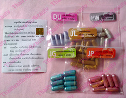 ส่วนประกอบ : ทิ้งถ่อน ตะโกนา บอระเพ็ด เมล็ดข่อย กระชาย พริกไทย หัวแห้วหมู ตรีผลา ฯลฯ