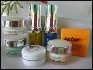 ตอนเช้า ล้างหน้าด้วยสบู่ AHA ตามด้วยครีมโสมหน้าใส ตามด้วยครีมกันแดดไยไหมก่อนแต่งหน้า