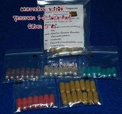 4.ช่วยกระชับหน้าท้อง ลดพุงโดยเฉพาะ ส่วนประกอบ : ทิ้งถ่อน ตะโกนา บอระเพ็ด เมล็ดข่อย กระชาย พริกไทย หัวแห้วหมู ตรีผลา ฯลฯ ขนาดบรรจุ 14 เม็ด ราคา 70 บาท/อาทิตย์