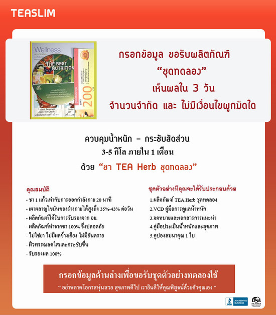 ท่านจะได้รับ ผลิตภัณฑ์ TEA HERB ชุดทดลอง