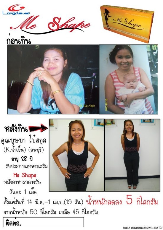 - มั่นใจว่าลดน้ำหนักได้จริง 5-10 กก.ต่อเดือน (เห็นผลจริงแล้วจากผู้ใช้มากมาย) มีภาพประกอบในเว็บกว่า 300 ตัวอย่าง