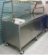 ชุดตู้ข้าวแกง+เคาเตอร์ ตู้โชว์อาหาร ขนาด 70x190 cm. ทำจากแสตนเลสอย่างดีประกอบด้วยตู้ข้าวแกงด้านบน วางได้ 2 ชั้น ด้านล่างเป็นตู้เก็บของมีประตู 3 บาน ด้านในมีชั้นวางของ 2 ชั้น ติดตั้งล้อตราม้าอย่างดี เคลื่อนย้ายได้ง่าย