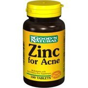 A special combination of nutrients for the skin Good N Natural's Zinc for Acne tablets provide a combination of nutrients including zinc and vitamins C, B-6, A and E, specially blended for your skin. Zinc for Acne is designed to be taken as a supplement. Suggested Use For adults, take two (2) tablets daily, preferably with meals. Ingredients