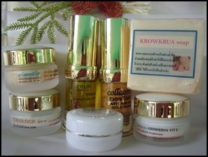 เพิ่มความกระจ่างใสให้แก่ผิวดูอ่อนกว่าวัย 3. คอลลาเจนทองคำ อุดมไปด้วยสารสกัดจากปลาทะเลน้ำลึก และส่วนผสมของทองคำบริสุทธิ์ช่วยบำรุงผิวลดริ้วรอยพร้อมกระชับรูขุมขน 4. ครีมกันแดดใยไหม SPF 60 ปกป้องผิวจากรังสี UVA/UVB ถึง 60 เท่า 5. ครีมกวาวเครือขาว สารสกัดจากกวาวเครือขาวช่วยลด ฝ้า กระ จุดด่างดำ ทำให้หน้าขาวใส 6. ครีมโสมหน้าใส ประกอบสารสกัดจากโสมญี่ปุ่นช่วยยับยั้งการสร้างเม็ดสี พร้อมบำรุงผิว