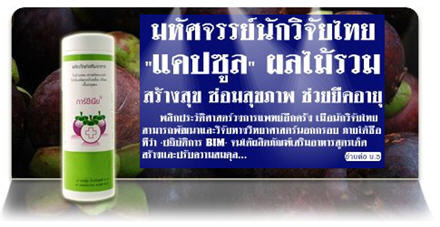 การ์ซีเนีย แคปซูลเสริมสุขภาพ ประกอบด้วยส่วนผสมของสารที่มีคุณสมบัติเด่นๆ ในมังคุดตามที่มีรายงานในวงการวิทยาศาสตร์มาแล้วในปริมาณที่เหมาะสม พร้อมทั้งมีส่วนผสมของสารจากธรรมชาติที่ปลอดภัยอื่น อาทิเช่น ใบบัวบก สารสกัดจากงาดำ โปรตีนสกัดจากถั่วเหลือง ฝรั่ง เพื่อช่วยเสริมสร้างประสิทธิภาพของสารสรรพคุณมังคุดให้มีประสิทธิภาพสูงขึ้น อีก โดยปราศจากผลข้างเคียง และได้มาตรฐานที่สามารถส่งออกไปจำหน่ายได้ในตลาดโลก เป็นผลิตภัณฑ์ ที่เกิดจากการพัฒนาต่อยอดผลงานวิจัยของคณะนักวิจัยนำโดย ศาสตราจารย์ ดร.พิเชษฐ์ วิริยะจิตรา และ ศ. ดร. พิเชษฐ์ เป็นผู้ควบคุมการผลิตเองให้มีสรรพคุณและประสิทธิภาพสูงปลอดภัย และไร้ผลข้างเคียง ประกอบด้วยส่วนผสมของสารที่มีคุณสมบัติเด่นๆ ในมังคุดตามที่มีรายงานในวงการวิทยาศาสตร์มาแล้วในปริมาณที่เหมาะสมพร้อม ทั้งมีส่วนผสมของสารจากธรรมชาติที่ปลอดภัยอื่นๆ เพื่อช่วยเสริมประสิทธิภาพของสรรพคุณสูงจากมังคุดให้มีประสิทธิภาพสูงขึ้น อีก โดยปราศจากผลข้างเคียง และได้มาตรฐานที่สามารถส่งออกไปจำหน่ายได้ในตลาดโลก แคปซูล (600 มก.) ประกอบด้วย ปริมาณ ผงน้ำใบบัวบก ปริมาณ 150 มก. (25%) ผงน้ำเนื้อมังคุด ปริมาณ 50 มก. (8.32%) สารสกัดจากงาดำ ปริมาณ 100 มก. (16.67%) โปรตีนสกัดจากถั่วเหลือง ปริมาณ 100 มก. (16.67%) ผงน้ำฝรั่ง ปริมาณ 100 มก. (16.67%) รับประทานครั้งละ 1-2 แคปซูล ก่อนนอนหรือหลังอาหารเย็นวันละ 1 ครั้ง รายละเอียด * ปริมาณสุทธิ: 50 แคปซูล นน.30 กรัม/ขวด * เลขทะเบียน อย.: 51-1-00739-1-0091 หมายเหตุ: เด็กและสตรีมีครรภ์ไม่ควรรับประทาน การได้รับสารอาหารต่างๆ ควรได้รับจากการบริโภคอาหารหลักที่หลากหลายชนิดครบทั้ง 5 หมู่ และเป็นสัดส่วนที่พอเหมาะ * หมายเหตุ: เด็กและสตรีมีครรภ์ไม่ควรรับประทาน การได้รับสารอาหารต่างๆ ควรได้รับจากการบริโภคอาหารหลักที่หลากหลายชนิดครบทั้ง 5 หมู่ และเป็นสัดส่วนที่พอเหมาะ * ส่วนประกอบสำคัญ: ใน 1 แคปซูล (600 มก.) ประกอบด้วย ผงน้ำใบบัวบก 150 มก.(25%), สารสกัดจากงาดำ 100 มก.(16.67%), โปรตีนสกัดจากถั่วเหลือง 100 มก.(16.67%), ผงน้ำฝรั่ง 100 มก.(16.67%), ผงน้ำเนื้อมังคุด 50 มก.(8.32%) * ปริมาณสุทธิ: 50 แคปซูล นน.30 กรัม/ขวด * คะแนนสะสม: 500 * เลขทะเบียน อย.: 51-1-00739-1-0091 สนใจสั่งซื้อหรือเป็นตัวแทนจำหน่ายคุณธนากร 0894643308 หรือ