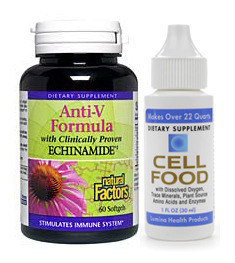 รักษาไวรัส แบคทีเรีย เชื้อรา ด้วยชุดอาหารเสริมคุณภาพสูง จากสหรัฐอเมริกา CELLFOOD + Anti-V สรรพคุณ: * ช่วยต่อต้านเชื้อไวรัสทุกชนิด รวมถึงเชื้อแบคทีเรีย เชื้อรา * เสริมสร้างภูมิต้านทานร่างกายให้แข็งแกร