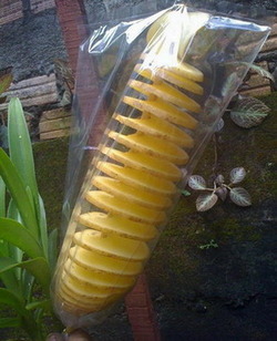 ขนาดน้ำหนักเบา ไม่ถึง 1 กิโลกรัม ตอนนี้ได้ปรับปรุงบางส่วนแล้วนะคะ - ตัวล็อคไม้ใหม่ ทำให้เสียมันฝรั่งน้อยลง - สามารถกำหนดได้ว่า มีกี่เกลียวในแต่ละไม้ เพื่อที่มันฝรั่งจะได้มีขนาดเท่ากันทุกไม้