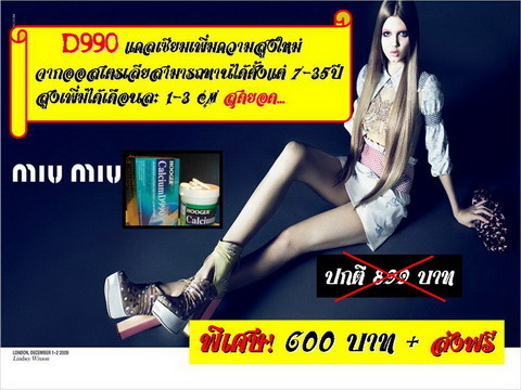 D990 แคลเซียมเพิ่มความสูงใหม่ จากออสเตรเลีย สามารถทานได้ตั้งแต่ 7-35ปีสูงเพิ่มได้เดือนละ 1-3 cm ราคา 600 บาท รายละเอียด D990 จากออสเตรเลียสูงภายในหนึ่งเดือน 1 กล่อง600 บาท สุดยอด!! ผลิตภัณฑ์เพิ่มความสูง