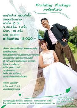 เจ้าสาว : ทรีทเมนต์ผิวหน้า ผิวกายขาวสดใส แวกซ์ทั่วเรือนร่าง ทรีทเมนต์ผิวกายขาวเนียนถาวรประกายทองคำ นวดหน้าคอลลาเจนโกลทองคำบริสุทธิ์ RF หน้า ลดความหย่อนคล้อย กระชับผิว Botox & Collagen White perfect sn-2 กระชับทรวงอก ลิฟติ้ง เฟช สปามือเท้า และกระชับสัดส่วนทั่วเรือนร่าง เจ้าบ่าว : นวดอโรม่า / White perfect sn-1 / นวดหน้าบำรุงครบชุด