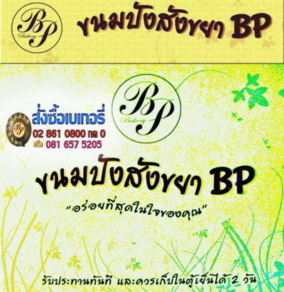 081 657 5205 ดูรายละเอียดอื่น ทางเว็บไซด์ www.bpbakery.com "ส่งถึงคุณแบบ สดและอร่อย"