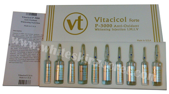 หัวเชื้อสูตรเข้มข้น ผิวขาว รวดเร็วทันใจ เหมือนดารา ทำมาเพื่อคอสเมติกด้านความขาว ใสโดยเฉพาะ 10 amps แถม วิตามิน C 20 amps Vitacicol Forte P-3000 (USA) = 3200