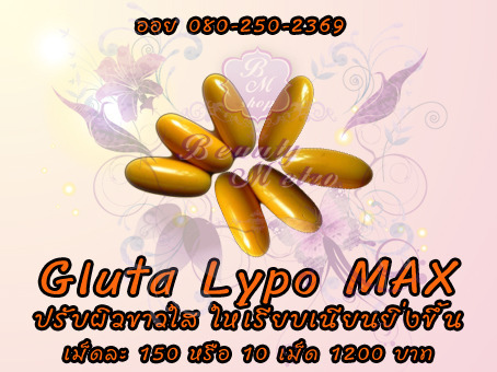 จากผลิตภัณฑ์ตัวเดิมที่ รู้จักกันดี Gluta Lypo Nano Sphere ขนาด 850 mg. อาหารเสริมบำรุงผิวสูตรเร่งรัด ที่ช่วยเรื่องผิวพรรณ ทั้งเป็นสารantioxidant และ Detoxication พัฒนาจนมาเป็น Gluta Lypo Max 1000 mg. เพื่อตอบสนองความต้องการของผู้ที่อยากได้ผิวในเวลาเร่งด่วน มีส่วนผสมที่เป็นส่วนช่วยซ่อมแซมผิวมากมาย อาทิเช่น Q10, Vitamin C, Soy Extract, Grape extract ที่ทั้งช่วยปรับสมดุลผิวและรักษาระดับสีผิว