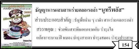 ส่วนประกอบสำคัญ : ธัญพืชต่าง ๆ งาดำ สาหร่ายคลอเรลล่า