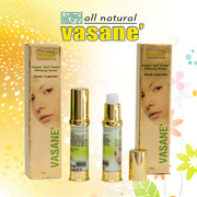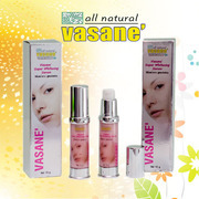 Vasane' Super Whitening Serum ซีรั่มหน้าขาว สูตรเร่งด่วน หลายคนอยากให้ใบหน้าขาวผ่อง เพราะ ทำให้ดูสวยขึ้น สดใส และมักจะดูอ่อนกว่า เมื่อเทียบกับผู้ที่มีใบหน้าหมองคล้ำ อีกทั้วงการมีใบหน้าขาวใสเมื่อแต่งเติมเครื่องสำอาง จะปรากฏสีของเครื่องสำอางชัดขึ้น นั่นคือสีสันบนใบหน้าจะดูสดใสตามสีเครื่องสำอางที่ทาตั้งแต่ แป้ง บรัสออน เนตรสำอาง ขนตาและคิ้ว อุปสรรค์ของการมีใบหน้าขาวผ่อง ก็คือ เซลล์สร้างเม็ดสีดำแบ่งตัวอย่างไม่มีวันหยุดพักผ่อน เมื่อมีเม็ดสีดำมากขึ้นเรื่อยๆ ใบหน้าจะดำคล้ำกระจายไปทั่ว หรือเกิดสีดำเป็นหย่อมๆ เรียกว่าฝ้า ซึ่งหลายคนเกลียดและกลัวการเป็นฝ้ามาก ถ้าไม่อยากให้หน้าดำให้หลีกเลี่ยงสิ่งต่อไปนี้ 1. แสงแดด:มีคุณสมบัติให้เซลล์สร้างเม็ดสีดำแบ่งตัวเพิ่มจำนวน จึงมีสีดำกระจายทั้งผิว เห็นได้ชัดเจนว่า เมื่อเราตากแดดจัดๆสักระยะ จะปรากฎสีดำใน1-2สัปดาห์ต่อมา ถ้าผิวแข็งแรงดีผิวดำจะ 2. หลีกเลี่ยงการรับประทานยาโดยมีข้อบ่งชี้อย่างชัดเจน : โดยเฉพาะการซื้อยารับประทานเอง เพราะยาบางอย่างเช่น Tetracycline เมื่อเข้าสู่ร่างกายมนุษย์และถูกแสงแดด จะทำให้ผิวดำ โดยเฉพาะผิวบริเวณที่ถูกแสงแดด เช่น ใบหน้า คอและแขนสองข้าง 3. พันธุกรรมเป็นเรื่องที่หลีกเลี่ยงยาก: เพราะยีนที่ควบคุมผิวพรรณ มีลักษณะที่โน้มเอียงที่เกิดสีดำได้ง่าย 4. การตั้งครรภ์และรับประทานยาคุมกำเนิด หรือฮอร์โมนทดแทนในวัยทอง จะมีผลต่อการระดับฮอร์โมนในร่างกาย ซึ่งจะกระตุ้นการสร้างสีดำ และเห็นชัดบริเวณโหนกแก้ม เหนือคิ้ว และหนวด การปรับสภาพผิวหรือทำให้ผิวขาวเป็นเรื่องของการเสริมความงาม โดยส่วนใหญ่นิยมการมีผิวสีอ่อนมากกว่าผิวสีเข้ม เพราะแลดูสะอาดตาและสดใสกว่า ปกติผิวหนังจะทำหน้าที่ปกคลุมและปกป้องร่างกายนั้น จะมีการสร้างเม็ดสีผิวหรือเมลานิน(melanin pigment) เพื่อทำหน้าที่เป็นทหารป้องกันผิวหนังจากสิ่งแวดล้อม โดยเฉพาะอย่างยิ่งจากแสงแดดมิให้เกิดการเผาไหม้หรือบวมแดง โดยเมลานินหรือเม็ดสีผิวเหล่านี้จะดูดซับรังสี UVในแสงแดดเอาไว้ กระบวนการสร้างเมลานิน : ในชั้นของหนังกำพร้าชั้นล่างสุด (stratum basale) มีกลุ่มเซลล์ที่เรียกว่า เซลล์สร้างสีผิว (melanocytes) ทำหน้าที่สร้างและหลั่ง melanosomes (brown organells) ซึ่งภายในประกอบด้วย copper containing enzyme ชื่อ tyrosinase สามารถเร่งปฏิกิริยาออกซิเดชั่นของไทโรซีนเปลี่ยนเป็น indole 5,6 quinone สารตัวนี้และ intermediates อีกหลายตัว จะเกิดปฏิกิริยา polymerization ไปเป็น highly insoluble substance ซึ่งสามารถรวมตัวกับโปรตีนอย่างหนาแน่นด้วย sulfhydryl linkage เกิดเป็นเมลานิน ปรากฎเป็นสีผิวเกิดขึ้น คุณสมบัติ : ซีรั่มหน้าขาว สูตรเร่งด่วน เสริม