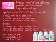 1. Glutathione Super White – กลูต้าไธโอน ซุปเปอร์ไวท์ ขาวบริ๊งได้ภายใน 14 วัน (แล้วแต่สภาพผิว) เพิ่ม Q10 และ Alpha Lipoic (ตัวที่ช่วยดูดซึมทำให้กลูต้าไธโอนดูดซึมเข้าสู่ร่างกายได้เร็วขึ้น) เพื่อผิวขาวเนียน กระจ่างใสทั่วเรือนร่างในเวลาอันรวดเร็ว ทั้งยังช่วย ลดริ้วรอยจาก Co Q10 ถูกคิดค้นพัฒนาโดยแพทย์ เป็น กลูต้าไธโอนสูตรเข้มข้น ส่งเข้าคลินิกโดยตรงเห็นผลเร็วกว่า กลูต้าไธโอนทั่วไป 2-3 เท่า ช่วยปรับสีผิวให้ขาวสว่างอมชมพูสม่ำเสมอ ทำให้ฝ้า กระ จุดด่างดำจางลง ทำให้ขาวเนียนสม่ำเสมอ 1 กระปุก 450 บาท >>ลดเหลือ 270 บาท 2 กระปุก 920 บาท กระปุกละ 250 บาท 4 กระปุก 920 บาท กระปุกละ 230 บาท 10 กระปุก 2200 บาท กระปุกละ 220 บาท 30 กระปุก 5700 บาท กระปุกละ 190 บาท 50 กระปุก 8500 บาท กระปุกละ 170 บาท 2. Glutathione Pure - กลูต้าเพียว ขาวใส 1 เดือน 3. Glutathione Plus - กลูต้าพลัส ขาวอมชมพู ลดกระ ลดฝ้า 4. Glutathione Q10 - กลูต้า Q10 ขาวใส ลดริ้วรอยชะลอวัย ผิวเต่งตึง 5. Glutathione Plus Zine - กลูต้าพลัส zinc ลดสิว ขาวใส ลดรอยด่างดำ 6. L-Carnithine - กลูต้าแอลคานร์นิทีน ลดน้ำหนัก กระชับสัดส่วน เร่งเผาผลาญไขมัน 1 กระปุก 350 บาท >>ลดเหลือ 200 บาท 2 กระปุก 360 บาท กระปุกละ 180 บาท 4 กระปุก 760 บาท กระปุกละ 160 บาท 10 กระปุก 1600 บาท กระปุกละ 150 บาท 30 กระปุก 3600 บาท กระปุกละ 130 บาท 50 กระปุก 5500 บาท กระปุกละ 110 บาท **ค่าจัดส่ง EMS 50 บาท 10 กระปุกขึ้นไป ส่งฟรี วิธีชำระ 1. ธนาคารไทยพาณิชย์ สาขาย่อยอาคารอับดุลราฮิม เลขที่บัญชี 153-207960-2 2. ธนาคารกรุงเทพ สาขาอาคารอับดุลราฮิม เลขที่บัญชี 031-002151-4 ประเภท ออมทรัพย์ ชื่อบัญชี นางสาวชลาลัย อิสริยานนท์ ติดต่อสอบถามเพิ่มเติม 0814098744 หรือ [email protected]