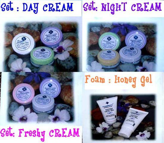 ช่วยลดความเข้มข้นของเม็ดสีบนใบหน้า ทำให้ผิวหน้าขาวอมชมพูแลดูอ่อนเยาว์ 2.ชุดไนท์ครีม ( ไนท์ครีม + ครีมกันแดด + ครีมขาวเนียน ) และชุดไนท์พิเศษ (เพิ่มเดย์ครีม เพื่อการบำรุงมากยิ่งขึ้น)