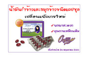 ส่วนประกอบสำคัญ 1. สาร แกมม่าออไรซานอล ทำหน้าที่กระตุ้นการไหลเวียนของโลหิต และ ช่วยลดคอเลสเตอรอลและไตรกรีเซอไรด์ในตับและเลือด เป็นผลให้ความดันโลหิตลดลง ปริมาณน้ำตาลในเลือดลดลง การอุดตันในหลอดเลือดในส่วนต่างๆ ของร่างกาย หัวใจ สมอง ตับ ไต ต่อมลูกหมาก ลดลง เลือดสูบฉีดไปเลี้ยงส่วนต่างๆ ของร่างกายได้ทั่วถึงมากยิ่งขึ้น 2. ช่วยลดระดับของไขมันชนิดเลว (LDL) ซึ่งก่อให้เกิดโทษต่อร่างกาย เช่น ทำให้เป็นโรคหัวใจ โรคอัมพฤกษ์ เป็นต้น 3. ช่วยเพิ่มไขมันชนิดดี (HDL) ซึ่งเป็นไขมันที่มีประโยชน์ต่อร่างกาย 4. วิตามินอี พบมากในน้ำมันรำข้าวจมูกข้าว จัดเป็นสารต้านอนุมูลอิสระ ช่วยยับยั้งและป้องกันการเกิดปฏิกิริยา OXIDATION ซึ่งทำให้เกิดการสลายตัวของเยื่อหุ้มเซลล์ และ ทำลายเนื้อเยื่อต่างๆ ภายในร่างกายโดยอนุมูลอิสระ ทำให้ร่างกายมีภูมิคุ้มกันต่อโรคต่างๆ นอกจากนั้น วิตามินอี ในรูปของ โทโคเฟอรอล และ โทโคไทรอีนอล ซึ่งช่วยยับยั้งและขจัดอนุมูลอิสระ ตัวต้นเหตุให้เกิดโรคต่างๆ เช่น โรคมะเร็ง เป็นต้น 5. มีกรดไขมันไลโนเลนิค หรือ โอเมก้า 3 ช่วยบำรุงสมอง ป้องกันโรคสมองเสื่อม ความจำเสื่อม เด็กวัยเรียน นักศึกษาระดับมหาวิทยาลัย คนวัยทำงาน ถ้าได้สารนี้เป็นประจำ จะทำให้สมองดี ความจำดี เรียนเก่ง 6. มีกรดไขมันไลโนเลอิค หรือ โอเมก้า 6 ช่วยบำรุงระบบประสาท ผิวหนังสดใส ระบบสืบพันธุ์ทำงานเป็นปกติ แก้ปัญหาการมีบุตรยาก รวมทั้งช่วยให้สมรรถภาพทางเพศมีความเป็นปกติด้วย 7. มีเลซิติน หรือ โอเมก้า 9 ช่วยชะลอความชรา บำรุงสมอง หัวใจ ตับ ไต ขจัดไขมันในเส้นเลือด 8. มีสารเซราไมด์ ช่วยบำรุงผิวพรรณให้เต่งตึง นุ่มนวล อ่อนเยาว์อยู่เสมอ ลบเลือนริ้วรอยเหี่ยวย่นบนใบหน้า จุดด่างดำ ฝ้า และ กระ เลือนหายไป 9. มีสารเมลาโทนีน ช่วยให้นอนหลับลึก หลับสนิท ทำให้ร่างกายได้รับการพักผ่อนเต็มที่ ร่างกายจึงแข็งแรง 10. สาร CLA เพิ่มการเผาผลาญไขมันในร่างกาย ทำให้ไม่อ้วน 11. ช่วยการขับถ่ายให้ดีขึ้น เป็นผลให้ลดความเสี่ยงโรคมะเร็งลำใส้ และ ริดสีดวงทวาร 12. ทำให้เส้นเลือดฝอยมีความยืดหยุ่นและทำงานได้ดี เป็นผลให้ดวงตาทำงานได้เป็นปกติ ป้องกันการเกิดโรคต้อ 13. ช่วยให้การทำงานของอวัยวะต่างๆ ทำงานได้อย่างมีประสิทธิภาพ การผลิตฮอร์โมนจากต่อใต้สมอง ต่อมหมวกไต ตับอ่อน รังไข และ อัณฑะ มีความเป็นปกติ วิธีรับประทาน รับประทานครั้งละ 2 แคปซูล วันละ 1-2 ครั้ง บรรจุกล่องละ 60 เม็ด ราคาสมาชิก 600 บาท ทั่วไป 900 บาท และขอแนะนำ ----------------------------------------------------------------------------------------------------------------- อมตะ โทมา โทมา Amata Tomatoma ประกอบไปด้วย · สารสกัดจากมะเขือเทศ ซึ่ง