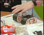 - สอนวิธีการใช้เสื่อม้วนข้าวเพื่อทำมากิไส้ต่างๆ