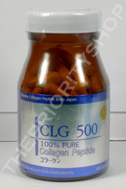 คอลลาเจนเป็ปไทด์แท้ 100%ยี่ห้อ CLG 500 นำเข้าจากประเทศญี่ปุ่น มี อย.ด้วยนะ วัตถุดิบก็ผ่านกระบวนการผลิตมาตราฐานสูงสุดได้รับ GMP ใน 1 แคปซูลจะประกอบด้วยไฮโดรไลซ์คอลลาเจนถึง 500 มก. คอลลาเจนจะช่วยทำให้ผิวเต่งตึงขึ้น ลดริ้วรอยบนใบหน้าและช่วยคืนความชุ่มชื้นให้ผิวหนังและเส้นผม รับรองได้ผล 100% 1ขวดบรรจุ 100 แคปซูล