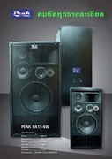 Peak ชุด PA สำหรับงานดนตรีสด ที่ให้เสียงละเอียดครบถ้วน ทุกย่านความถี่ของเสียง ฟังสบายหู ทั้งระยะใกล้และไกล ยินดีทดลองให้ในสถานที่จริงหรือจะเทียบกับเครื่องเสียงที่มีอยู่แล้วก็ได้ กล้ารับประกันว่าเราปราบหลายยี่ห้อที่ดังๆมาแล้วเหมาะสำหรับ เธค ผับ ร้านอาหารขนาดใหญ่ ใช้งานกลางแจ้งหรืองานแสดงดนตรีสด เพราะจะให้เสียงที่ดังแรง คมชัด ไม่บาดหู