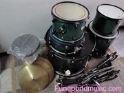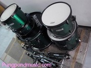 ขาย กลองชุด Paramount สีเขียว สภาพดี อุปกรณ์ครบ และ แอมป์เบส Crate BX 80