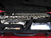 แซ็กโซโฟน อัลโต้ ยี่ห้อ ANTIGUAรุ่นชุบเงินแท้ พร้อมกล่องอย่างดี และอุปกรณ์ เสียงดีมากMADE IN TAIWAN