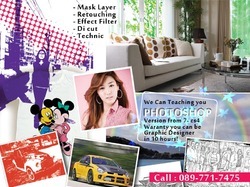 รวมทั้งสอนเทคนิคการใช้ filter ใน PHOTOSHOP การทํา dicut, retouch การแต่งรูปถ่ายจากภาพสแกน และดิจิตอลเพื่อนำไปไปใช้งานพิมพ์