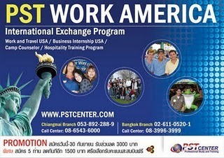 http://pstworkandtravel.blogspot.com/2011/06/pst-center-work-and-travel-usa-9-austin.html">Welcome to PSTcenter Work and Travel PST Center ได้รับการสนับสนุนและการยอมรับจากองค์กรระหว่างประเทศของสหรัฐอเมริกา ให้ดำเนินการจัดการโครงการ Work and Travel USA ในประเทศไทยขึ้นโดยเป็นโครงการแลกเปลี่ยนระดับอุดมศึกษาที่มีมานานกว่า 9 ปีในประเทศไทย ทั้งนี้มีสำนักงานใหญ่ตั้งอยู่ในเมือง Austin มลรัฐ Texas และเมือง Southbury มลรัฐ Connectticut โครงการ Work and Travel คืออะไร ? Work and Travel คือ โครงการที่อยู่ภายใต้การดูแล และ ควบคุมของรัฐบาลอเมริกัน (U.S. Department of State) โดยมีวัตถุประสงค์ทางการศึกษาที่เน้นการฝึกอบรมและการแลกเปลี่ยนวัฒนธรรม Work and Travel เป็นโครงการที่ได้รับการยอมรับและเป็นที่รู้จักในระดับนานชาติ ทั้งเอเชีย ยุโรป ลาติน อเมริกา ออสเตรเลีย และประเทศอื่นๆทั่วโลก โดยมีนักศึกษาเข้าร่วมโครงการ Work and Travel มากกว่า 100,000 คนในแต่ละปี (The Most Popular Work and Travel Program in USA) Work and Travel เป็นโครงการที่เปิดโอกาสให้น้องๆนักศึกษาอายุระหว่าง 18-28 ปี ได้มีโอกาสเรียนรู้วิถีชีวิตความเป็นอยู่และวัฒนธรรมของชาวอเมริกัน พร้อมทั้งเพิ่มพูนทักษะทางด้านภาษาอังกฤษผ่านการฝึกงานกับชาวอเมริกันในช่วงเดือน มี.ค.-มิ.ย. ของทุกๆปี ซึ่งจะมีสถานฑูตอเมริกาประจำประเทศไทยเป็นผู้ดำเนินการออก VISA ประเภท J-1 ซึ่งเป็น VISA สำหรับเยาวชนที่เข้าร่วมโครงการแลกเปลี่ยนวัฒนธรรม ฝึกงาน และท่องเที่ยวในอเมริกาได้สูงสุด 4 เดือน PST CENTER - Professional Study and Training Center PST สาขากรุงเทพ: BTS ราชเทวี 300/9 Asia Hotel 2nd. Fl. Suite 2A Payathai Rd., Rajthewee Bangkok Thailand 10400.