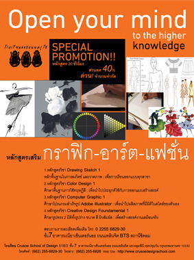 Open your mind to the higher knowledge : หลักสูตรเสริมกราฟิก อาร์ต -แฟชั่น