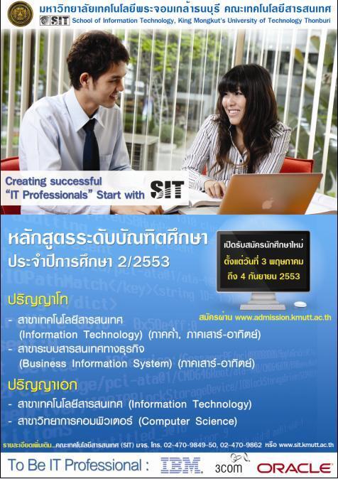 IT@KMUTT เปิดรับสมัครนักศึกษาใหม่ หลักสูตรบัณฑิตศึกษา 2/2553