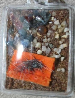 ด้านหลังล็อกเก็ต บรรจุ เม็ดพระธาตุ เกศาหลวงปู่ (อันนี้นะถ้าหลวงปู่ไม่ให้ ขอยังไงก็ไม่ได้ ไม่ใช่จะได้กันง่ายๆ) จีวรหลวงปู่ เกศาหลวงปู่ เม็ดทรายเสกหลวงปู่