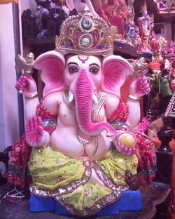 พระพิฆเนศ ปางสัมปทายะ (ปางตกแต่งเครื่องประดับเต็มยศ) เนื้อดินอินเดียเพ้นท์สีสูง 22 นิ้ว ราคาพิเศษ