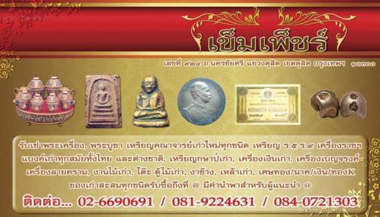 "ร้าน เข็มเพ็ชร์ วัตถุโบราณ" รับเช่าพระเครื่อง-พระบูชา,เหรียญคณาจารย์,เหรียญที่ระลึก ร.5-ร.9 ,แบงค์เก่าเหรียญเก่าทั้งของไทยและต่างประเทศ,แบงค์จีน ,เหล้าเก่า xo,กระเพาะปลา,งาช้าง,เครื่องลายคราม,เครื่องเบญจรงค์ ,เครื่องเงิน,กาน้ำชา เก่า,โต๊ะ-ตู้ไม้สัก,ของเก่าสะสมทุกชนิด รับซื้อถึงที่โทร 02-6690691,081-9224631,084-0721303 เลขที่924 ถนน.นครชัยศรี แขวง.ถนนนครชัยศรี เขต.ดุสิต กรุงเทพฯ 10300