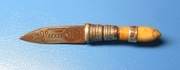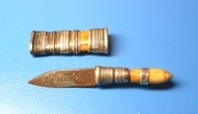 มีดสาริกาหลวงพ่อเดิม วัดหนองโพ ด้าม/ฝักทำด้วยงา เลี่ยมเงิน ขนาด 1 นิ้ว สภาพเก่ามากค่ะ(รหัส MS01)