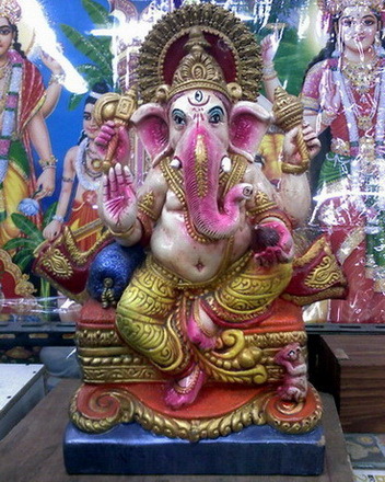 พระพิฆเนศปางสิทธิคณปติประทับบัลลังก์ใหญ่ (ปางประทานความสมบูรณ์ และทรัพย์สมบัติ) 1 ใน 32 ปางอวตาร เนื้อดินอินเดียเพ้นท์สีสูง 20 นิ้ว องค์ใหญ่ ปางหายาก สวยงามมากๆ ราคาบูชาถูกมากๆ 13,000.-